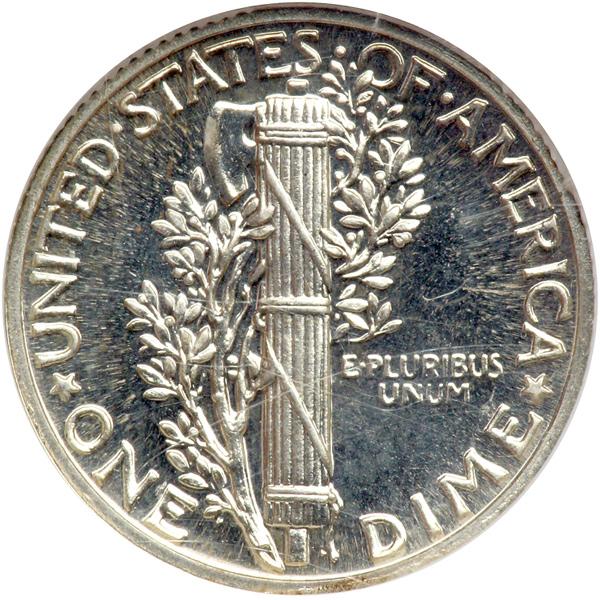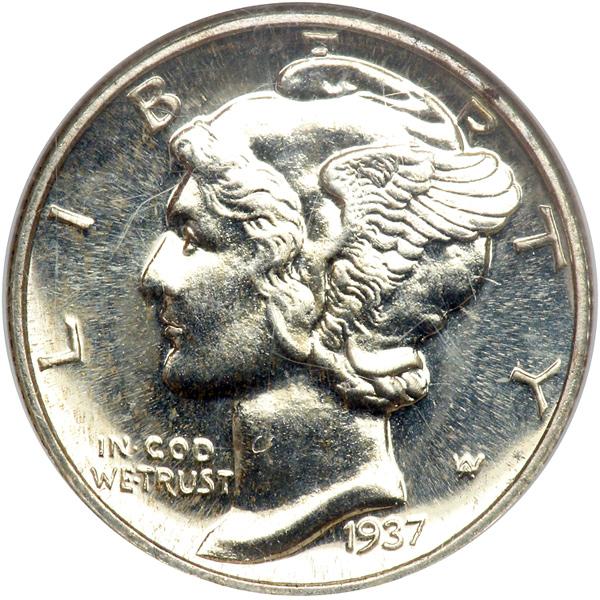 1937 Mercury Dime. NGC graded Proof 66. A brilliant white gem, gleaming with originality.