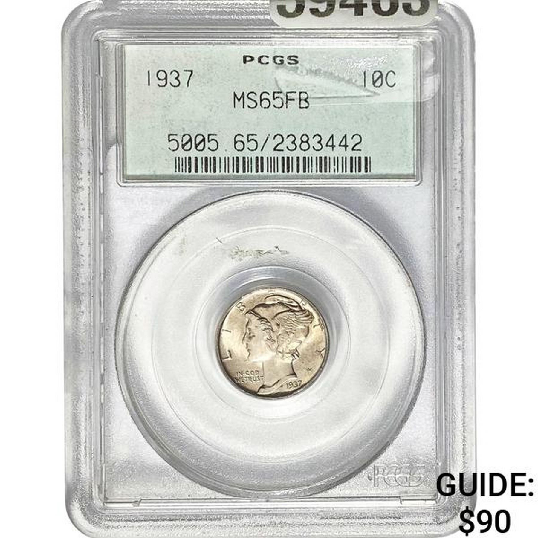 1937 Mercury Dime PCGS MS65FB