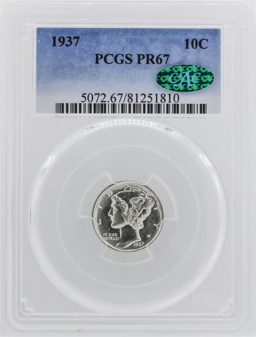 One 1937 Mercury Dime Proof Coin PCGS PR67 CAC. PCGS Graded.