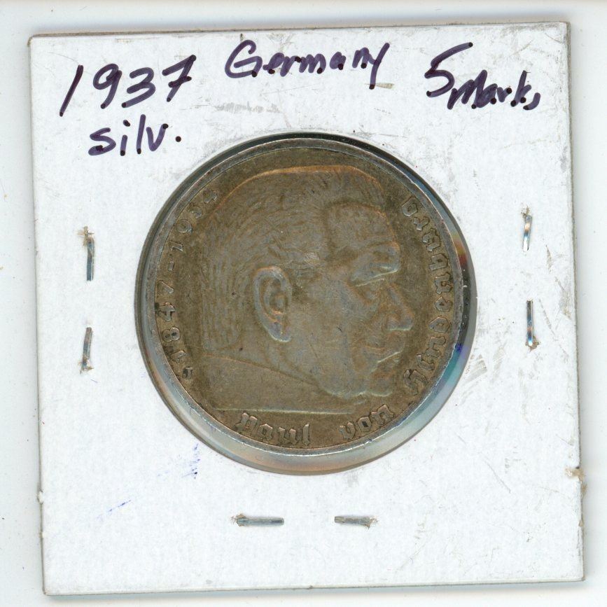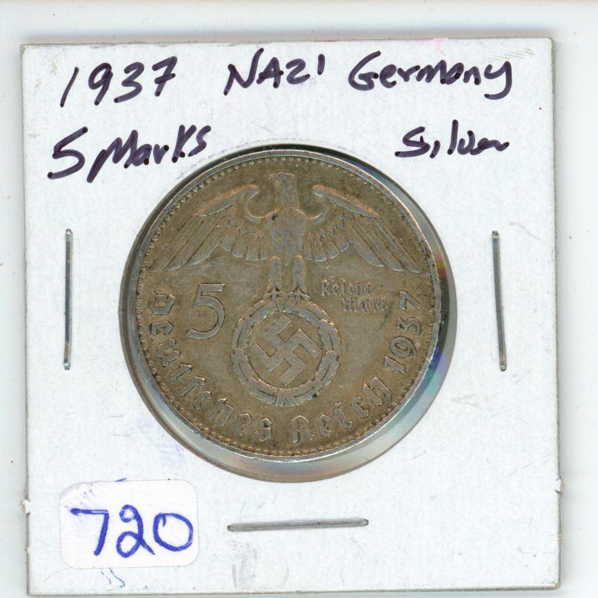 1937 Nazi Germany Silver 5 Marks