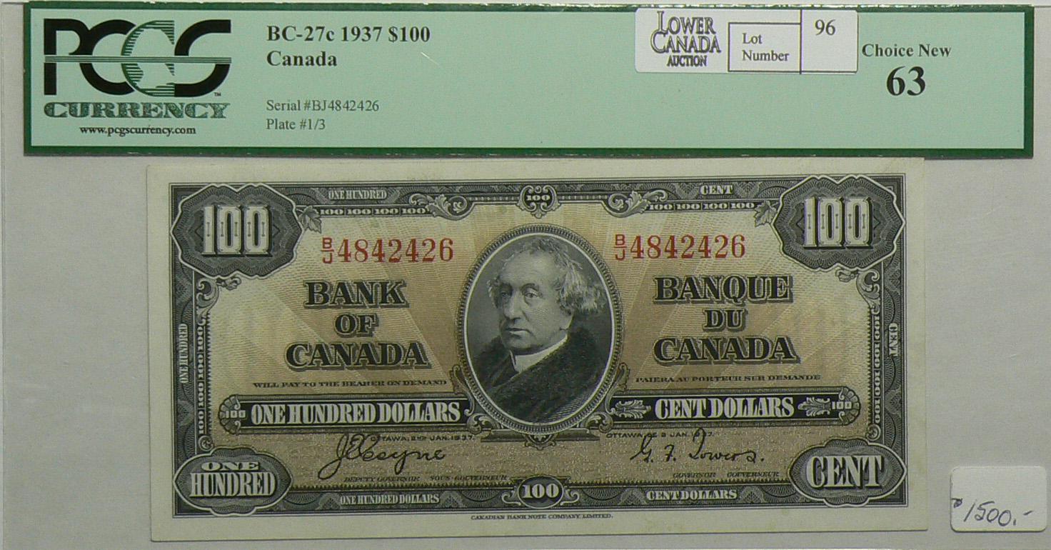 1937 One Hundred Dollars, BC-27c, PCGS UNC-63, serial B/J4842426.