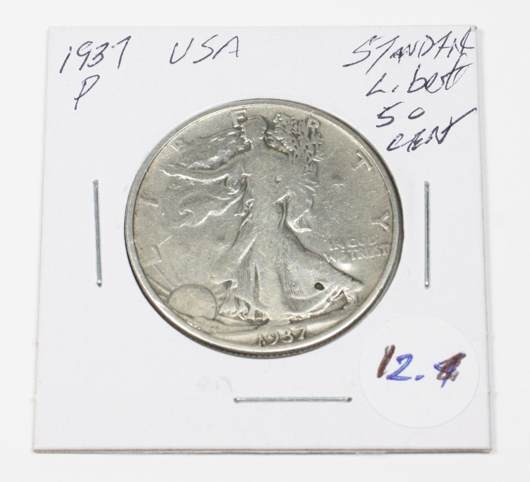 RARER COIN JUST BEFORE WW II, WALKING LIBERTY 50 CENT PIECE FROM ESTATE. LOOK CLOSELY AT DETAILS IN THE COIN