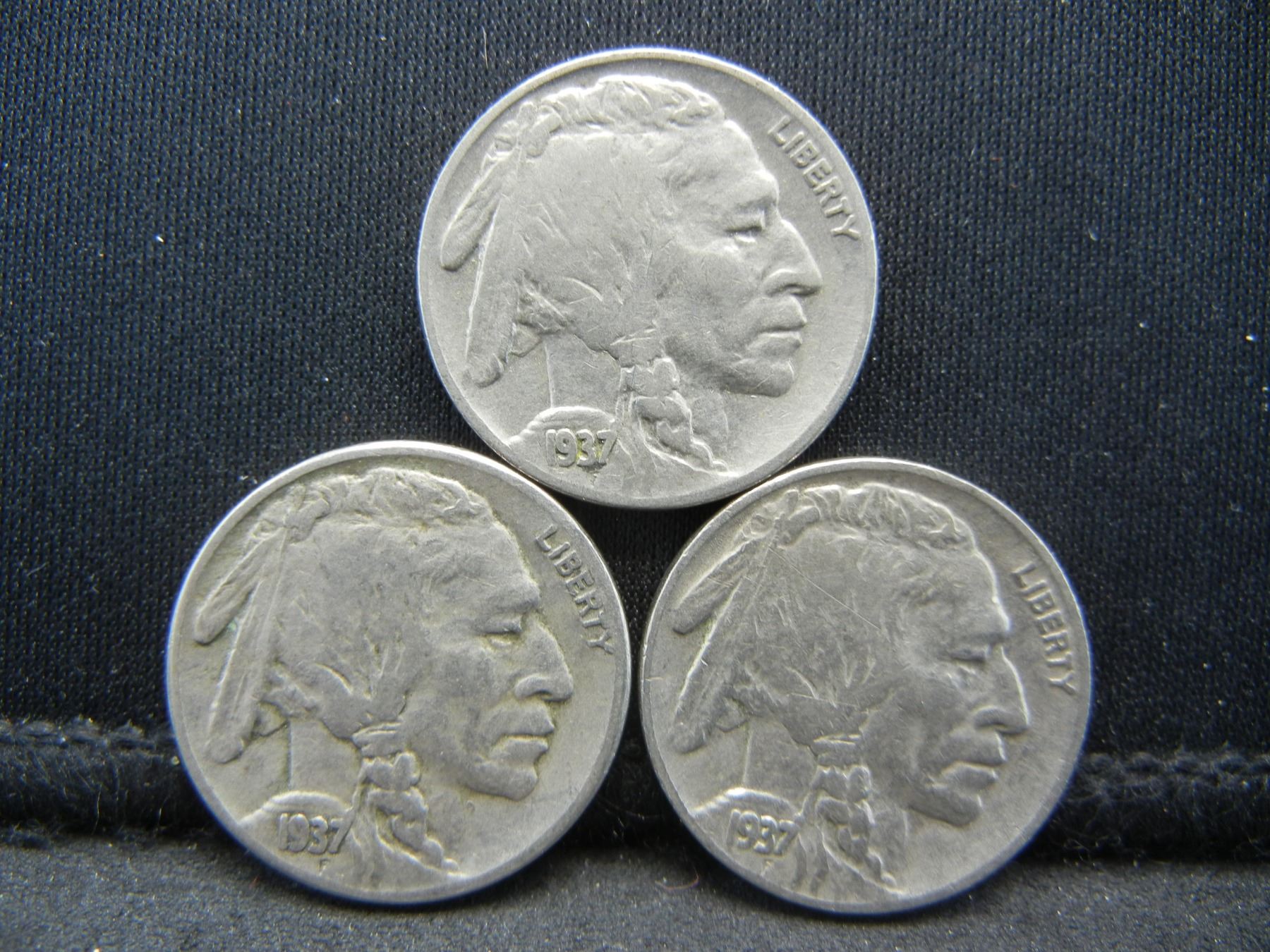 1937 P,D,S Buffalo Nickels - Higher Grades