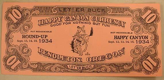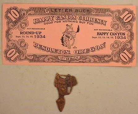 1937 PENDLETON ROUND UP WATCH FOB AND 1934 10 DOLLAR SCRIP NOTE