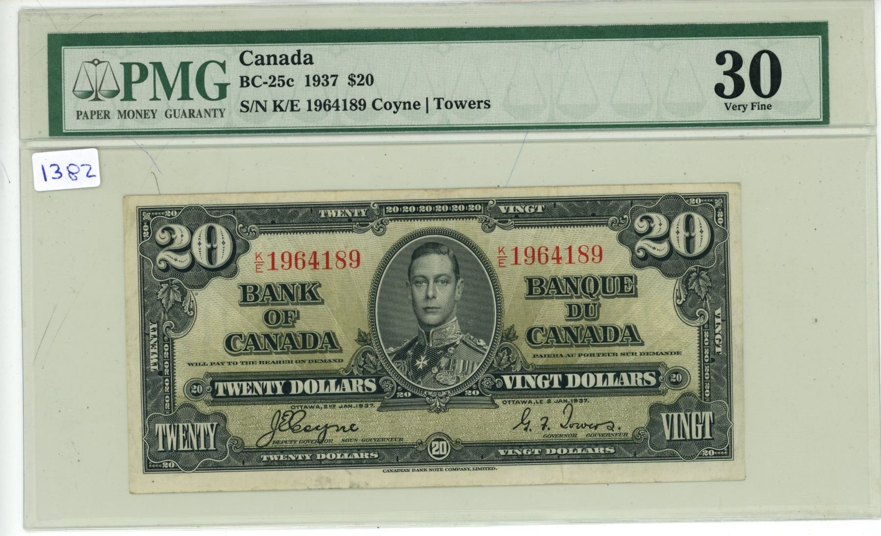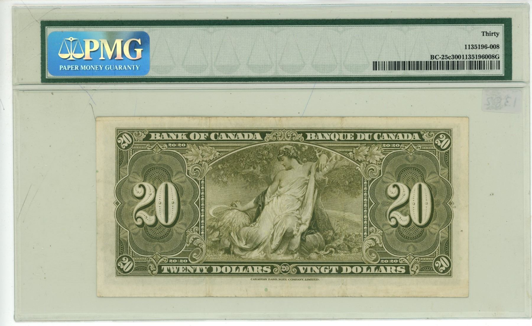 1937 PMG Graded - Twenty Dollar Canadian Bank Note - VF30