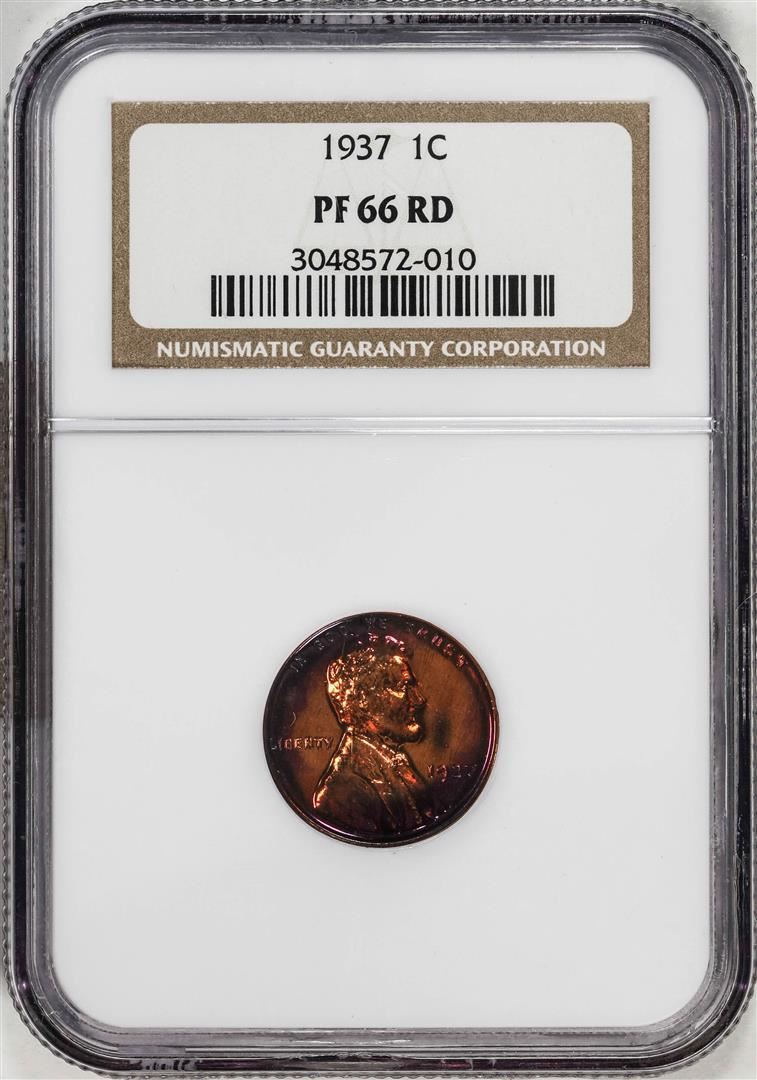 One 1937 Proof Lincoln Wheat Cent Coin NGC PF66RD. NGC Certified.