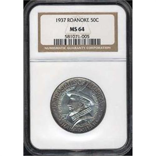 Original toning over very choice quality satin-fresh luster. The Roanoke portrays Sir Walter Raleigh wearing a typical hat of the day decked out with a small feather in the brim.