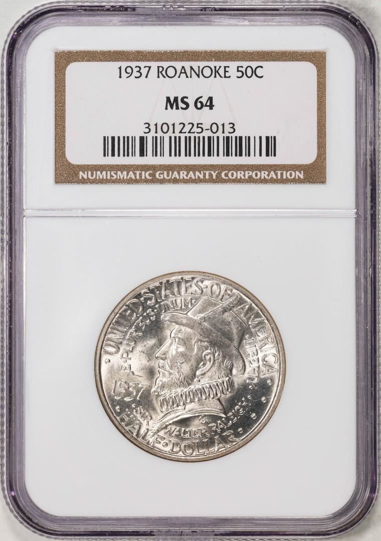 One 1937 Roanoke Commemorative Half Dollar Coin NGC MS64. NGC Certified.