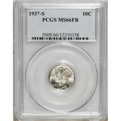 <B>1937-S 10C MS66 Full Bands PCGS.</B></I> . PCGS Population (226/71). NGC Census: (84/32). Mintage: 9,740,000. Numismedia Wsl. Price for NGC/PCGS coin in MS66: $260. (#5009)<BR><BR><B>Coin Engraver:</B> Adolph A. Weinman<BR><BR><b>Shipping:</b> Coins & Currency (<a target="_blank" href="http://www.heritageauctions.com/common/shipping.php">view shipping information</a>)