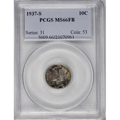 <B>1937-S 10C MS66 Full Bands PCGS.</B></I> PCGS Population (227/71). NGC Census: (84/33). Mintage: 9,740,000. Numismedia Wsl. Price for NGC/PCGS coin in MS66: $260. (#5009)<BR><BR><B>Coin Engraver:</B> Adolph A. Weinman<BR><BR><b>Shipping:</b> Coins & Currency (<a target="_blank" href="http://www.heritageauctions.com/common/shipping.php">view shipping information</a>)