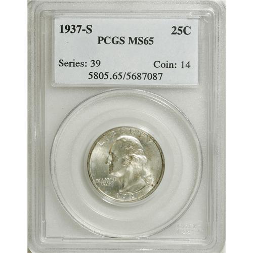 1937-S 25C MS65 PCGS. PCGS Population (465/152). NGC C