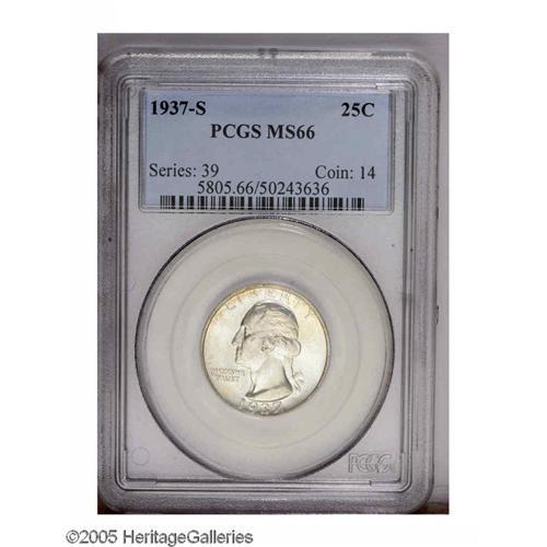 1937-S 25C MS66 PCGS. DDO-001. The motto is lightly di 1937-S[25C] MS66 PCGS.