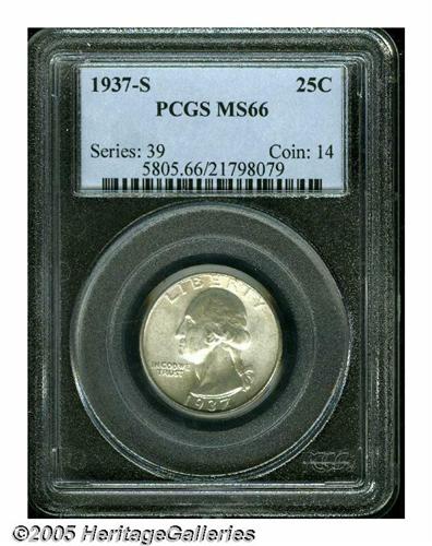 1937-S 25C MS66 PCGS. The silver-gray, lustrous s