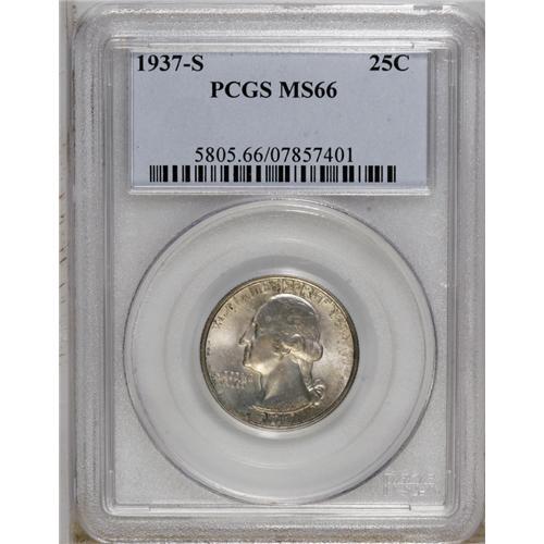 <B>1937-S<25C> MS66 PCGS.</B></I> Vibrant almond-gold and powder-blue toning endow this lustrous and undisturbed Premium Gem. A representative from one of the lowest-mintage issues of the series.