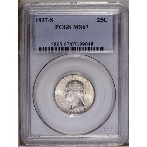 1937-S 25C MS67 PCGS. A creamy, virtually mark-free Mi 1937-S[25C] MS67 PCGS.