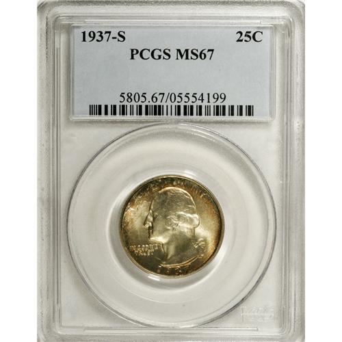 1937-S 25C MS67 PCGS. Vibrant golden-russet and jade-g