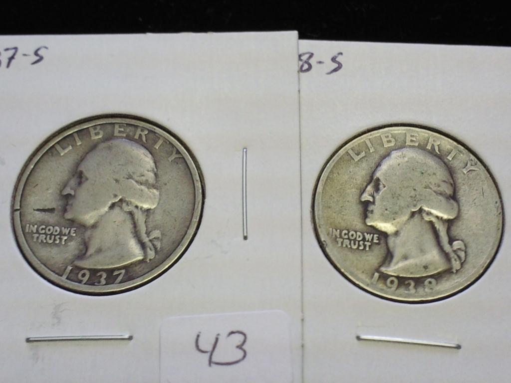 1937-S & 38-S WASHINGTON SILVER QUARTERS