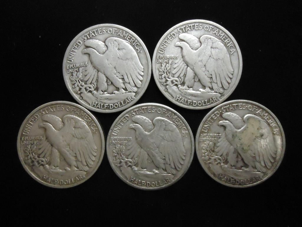 1937-S,39-S,41-S,42 & 43 WALKING LIBERTY HALVES