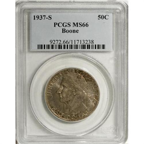 <B>1937-S 50C Boone MS66 PCGS.</B></I> PCGS Population (116/28). NGC Census: (145/30). Mintage: 2,506. Numismedia Wsl. Price for NGC/PCGS coin in MS66: $675. (#9272)<BR><BR><b>Shipping:</b> Coins & Currency (<a target="_blank" href="http://www.heritageauctions.com/common/shipping.php">view shipping information</a>)