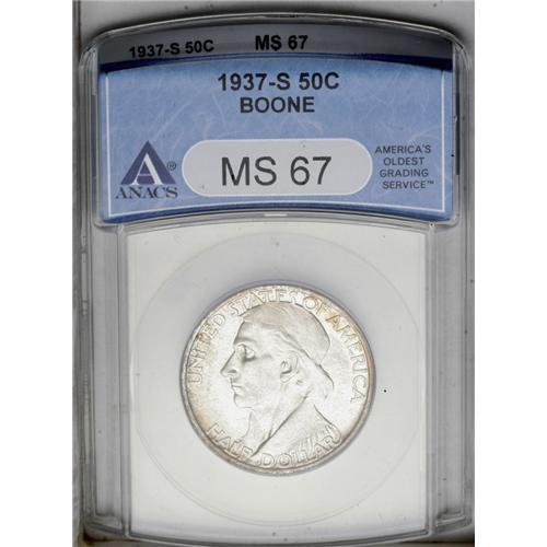 1937-S 50C Boone MS67 ANACS. Mildly reflective with vi 1937-S[50C] Boone MS67 ANACS.