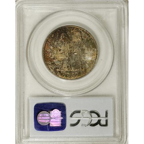 <B>1937-S 50C Boone MS67 PCGS.</B></I> Bright crimson, russet, and lime-green toning drapes the shining surfaces of this attractive and carefully preserved Boone half. The mintage of 2,506 pieces for 2,500 sets, half the previous year's figure, reflects the decline of demand for commemoratives in late 1936. Population: 27 in 67, 1 finer (3/07).<BR><I>From The Cary & Cheryl Porter Collection.</B></I><BR><BR><b>Shipping:</b> Coins & Currency (<a target="_blank" href="http://www.heritageauctions.com/common/shipping.php">view shipping information</a>)