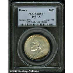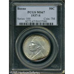 <B>1937-S 50C Boone MS67 PCGS.</B></I> Very lightly toned with most of the original mint brilliance still in evidence, there is a deep accent of golden-russet toning around the extreme perimeter of each side. A smooth, nearly unblemished example. Population: 19 in 67, 1 finer (1/05). Lot:8456