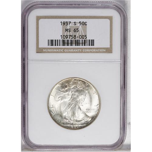 1937-S 50C MS65 NGC. A highly lustrous and decently st