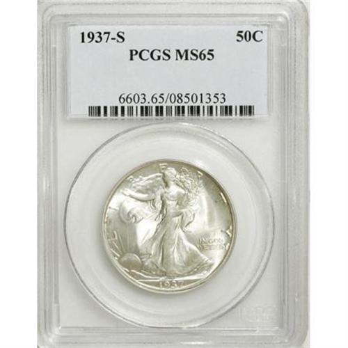 <B>1937-S 50C MS65 PCGS.</B></I> PCGS Population (719/293). NGC Census: (370/112). Mintage: 2,090,000. Numismedia Wsl. Price for NGC/PCGS coin in MS65: $815. (#6603)<BR><BR><B>Coin Engraver:</B> Adolph A. Weinman<BR><BR><b>Shipping:</b> Coins & Currency (<a target="_blank" href="http://www.heritageauctions.com/common/shipping.php">view shipping information</a>\)