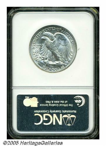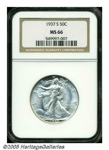 <B>1937-S<50C> MS66 NGC.</B></I> This S-mint is near brilliant, displaying just a hint of light milky color along portions of the obverse borders. The design elements are adequately struck, though softness is apparent in the area of Liberty's left hand. A few trivial marks are noted on Liberty's legs and in the right (facing) obverse field.