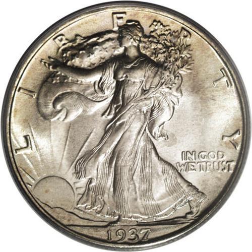 <B>1937-S 50C MS67 PCGS.</B></I> Light chestnut toning graces both sides of this lustrous and beautifully preserved Superb Gem. The strike is decidedly above average for a San Francisco Walker, since the head is needle-sharp and the skirt lines are nearly complete. The thumb is separated, although the branch hand does show the expected blending of detail. Population: 17 in 67, 0 finer (2/07).<BR><BR><b>Shipping:</b> Coins & Currency (<a target="_blank" href="http://www.heritageauctions.com/common/shipping.php">view shipping information</a>)