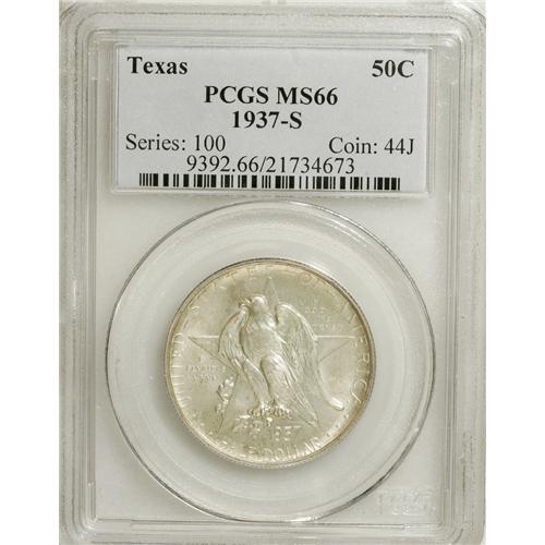 <B>1937-S 50C Texas MS66 PCGS.</B></I> PCGS Population (367/66). NGC Census: (778/156). Mintage: 6,637. Numismedia Wsl. Price for NGC/PCGS coin in MS66: $320. (#9392)<BR><BR><b>Shipping:</b> Coins & Currency (<a target="_blank" href="http://www.heritageauctions.com/common/shipping.php">view shipping information</a>)