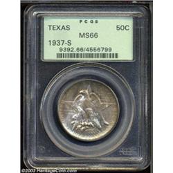<table><tr><td><TABLE cellSpacing=0 cellPadding=0 width="100%" bgColor=#000000 border=0><TBODY> <TR><TD width="100%"><TABLE cellSpacing=1 cellPadding=3 width="100%" border=0><TBODY><TR><TD width="100%" bgColor=#79735c><FONT face=arial color=#ffffff size=3><B>Description</B> </FONT></TD></TR><TR><TD width="100%" bgColor=#ffffff><FONT face=arial size=2><B>1937-S 50C Texas MS66 PCGS.</B></I> A very interestingly toned coin. The obverse displays rich russet-brown toning with a wide diagonal streak of brilliance, while the reverse is mostly brilliant with a dusky outline of the same tonal qualities around the periphery. Thick mint frost is seen on both sides of this pleasing, problem-free coin. </FONT></TD></TR></TBODY></TABLE></TD></TR></TBODY></TABLE><BR><A name=PricesRealized></A><TABLE cellSpacing=0 cellPadding=0 width="100%" bgColor=#000000 border=0><TBODY><TR><TD width="100%"><TABLE cellSpacing=1 cellPadding=3 width="100%" border=0><TBODY><TR><TD width="100%" bgColor=#79735c><A name=PR><FONT face=arial color=#ffffff size=3><B>Previous Prices from Heritage Auctions</B> </FONT></A></TD></TR><TR><TD bgColor=#f6f6ed><TABLE cellSpacing=0 cellPadding=0 width="100%" border=1><TBODY><TR><TD align=middle width="33%"><B>Date</B></TD><TD align=middle width="33%"><B>Service</B></TD><TD align=middle width="33%"><B>Price</B></TD></TR><TR bgColor=whitesmoke><TD width="33%"><B>09/30/2003</B></TD><TD width="33%">PCGS</TD><TD width="33%">$166.75</TD></TR><TR bgColor=whitesmoke><TD width="33%"><B>02/26/2002</B></TD><TD width="33%">PCGS</TD><TD width="33%">$184.00</TD></TR><TR bgColor=whitesmoke><TD width="33%"><B>08/06/2003</B></TD><TD width="33%">NGC</TD><TD width="33%">$178.25</TD></TR><TR bgColor=whitesmoke><TD width="33%"><B>01/13/2003</B></TD><TD width="33%">NGC</TD><TD width="33%">$143.75</TD></TR><TR bgColor=whitesmoke><TD width="33%"><B>11/23/2002</B></TD><TD width="33%">PCGS</TD><TD width="33%">$172.50</TD></TR><TR bgColor=whitesmoke><TD width="33%"><B>07/29/2002</B></TD><TD width="33%">PCGS</TD><TD width="33%">$166.75</TD></TR><TR bgColor=whitesmoke><TD width="33%"><B>06/02/2001</B></TD><TD width="33%">PCGS</TD><TD width="33%">$149.50</TD></TR><TR bgColor=whitesmoke><TD width="33%"><B>11/17/2000</B></TD><TD width="33%">NGC</TD><TD width="33%">$143.75</TD></TR><TR bgColor=whitesmoke><TD width="33%"><B>05/06/2000</B></TD><TD width="33%">NGC</TD><TD width="33%">$195.50</TD></TR><TR bgColor=whitesmoke><TD width="33%"><B>08/07/1999</B></TD><TD width="33%">NGC</TD><TD width="33%">$138.00</TD></TR><TR bgColor=whitesmoke><TD width="33%"><B>09/26/1998</B></TD><TD width="33%">PCGS</TD><TD width="33%">$189.75</TD></TR><TR bgColor=whitesmoke><TD width="33%"><B>02/13/1998</B></TD><TD width="33%">NGC</TD><TD width="33%">$154.00</TD></TR><TR bgColor=whitesmoke><TD width="33%"><B>03/04/1995</B></TD><TD width="33%">PCGS</TD><TD width="33%">$165.00</TD></TR><TR bgColor=whitesmoke><TD width="33%"><B>01/05/1994</B></TD><TD width="33%">PCGS</TD><TD width="33%">$253.00</TD></TR><TR bgColor=whitesmoke><TD width="33%"><B>01/06/1993</B></TD><TD width="33%">PCGS</TD><TD width="33%">$242.00</TD></TR></TBODY></TABLE></TD></TR><TR><TD bgColor=#ffffff><FONT face=arial size=1 ?>PLEASE NOTE: All prices realized reflect the final hammer price PLUS the buyer's premium in auctions that charge a buyer's premium. Each item has a notation at the top of the listing indicating whether that lot included a buyer's premium. Example: A item that sells with a final hammer price of $100 and a 20% buyer's premium will display with a price realized of $120. All information listed is intended to be as accurate as possible, but errors are possible. Please use this guide carefully and inform us of any inaccuracies. </FONT></TD></TR></TBODY></TABLE></TD></TR></TBODY></TABLE><BR><TABLE cellSpacing=0 cellPadding=0 width="100%" bgColor=#000000 border=0><TBODY><TR><TD width="100%"><TABLE cellSpacing=1 cellPadding=3 width="100%" border=0><TBODY><TR><TD width="100%" bgColor=#79735c colSpan=6><FONT face=arial color=#ffffff size=3><B>Price Guide*</B> </FONT></TD></TR><TR bgColor=#f6f6ed><TD align=middle><B>Grade</B> </TD><TD align=middle><B>Coin World<BR>(Trends)</B> </TD><TD align=middle><B>Numismedia<BR>Retail</B> </TD><TD align=middle><B>Numismedia<BR>Wholesale</B> </TD><TD align=middle><B>Coin<BR>Universe</B> </TD><TD align=middle><B>Heritage<BR>Value Index</B> </TD></TR><TR bgColor=#ffffff><TD align=middle>65</TD><TD align=right>---</TD><TD align=right>$190.00</TD><TD align=right>$152.00</TD><TD align=right>$175.00</TD><TD align=right>$132.00</TD></TR><TR style="FONT-WEIGHT: bold" bgColor=#cccfdd><TD align=middle>66</TD><TD align=right>---</TD><TD align=right>$238.00</TD><TD align=right>$190.00</TD><TD align=right>$250.00</TD><TD align=right>$215.00</TD></TR><TR bgColor=#ffffff><TD align=middle>67</TD><TD align=right>---</TD><TD align=right>$780.00</TD><TD align=right>$625.00</TD><TD align=right>$1,500.00</TD><TD align=right>$1,020.50</TD></TR><TR bgColor=#ffffff><TD colSpan=6><FONT size=1>*All information listed is intended to be as accurate as possible, but errors are possible. No item may be returned or refused based on this information which is provided as a service to our customers. You should contact each pricing source directly to determine the accuracy of this information. </FONT></TD></TR></TBODY></TABLE></TD></TR></TBODY></TABLE><BR><TABLE cellSpacing=0 cellPadding=0 width="100%" bgColor=#000000 border=0><TBODY><TR><TD width="100%"><TABLE cellSpacing=1 cellPadding=3 width="100%" border=0><TBODY><TR><TD width="100%" bgColor=#79735c><FONT face=arial color=#ffffff size=3><B>Population Guide</B> </FONT></TD></TR><TR bgColor=#ffffff><TD align=middle><!-- Begin Output of Population Grid--><TABLE cellSpacing=0 cellPadding=0 width="100%" border=0><TBODY><TR><TD vAlign=center><TABLE cellSpacing=0 width="100%" border=1 cellsadding="3"><TBODY><TR><TD vAlign=center><TABLE cellSpacing=0 cellPadding=3 width="100%" border=1><TBODY><TR><TD vAlign=center a