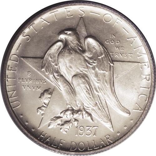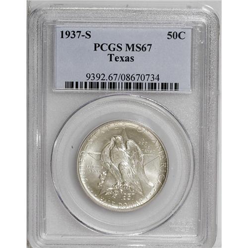 <B>1937-S<50C> Texas MS67 PCGS.</B></I> A lovely example with superb luster and pale powder-blue toning on both sides. Sharply struck and intricately detailed with nearly immaculate surfaces. This piece is tied for the top grade in its population; PCGS has graded none finer (7/06).