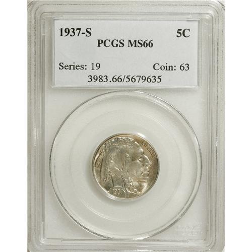 1937-S 5C MS66 PCGS. PCGS Population (1022/76). NGC Ce