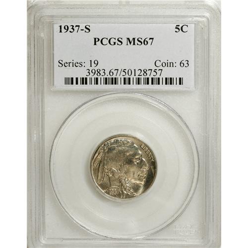 1937-S 5C MS67 PCGS. This piece is tied for the finest