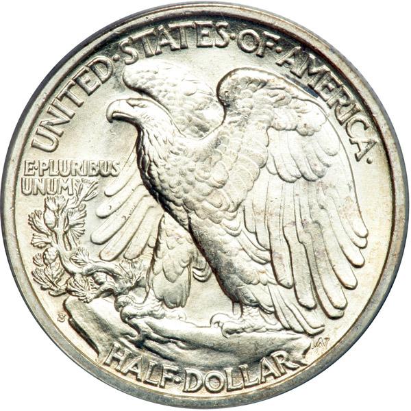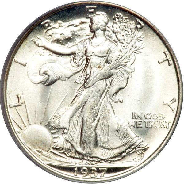 1937-S Liberty Walking Half Dollar. PCGS graded MS-66. Another white coin whose beautiful surface simply dances with luster (PCGS # 6603) .