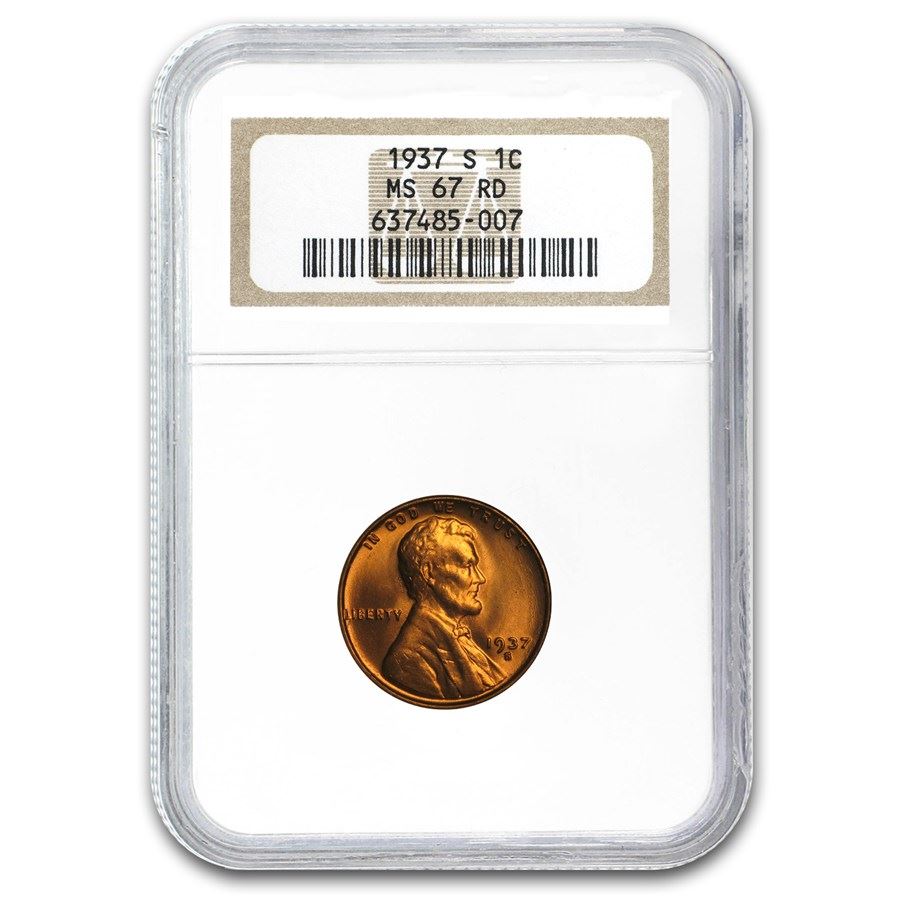 1937-S Lincoln Cent MS-67 NGC (Red)