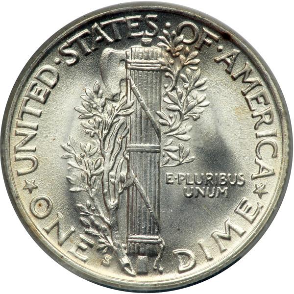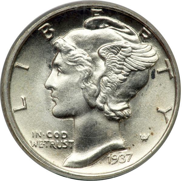 1937-S Mercury Dime. PCGS graded MS-67 Full Bands. A superb white coin, the surface ripples with silvery color. Pop 74; 1 finer in 68FB (PCGS # 5009) .