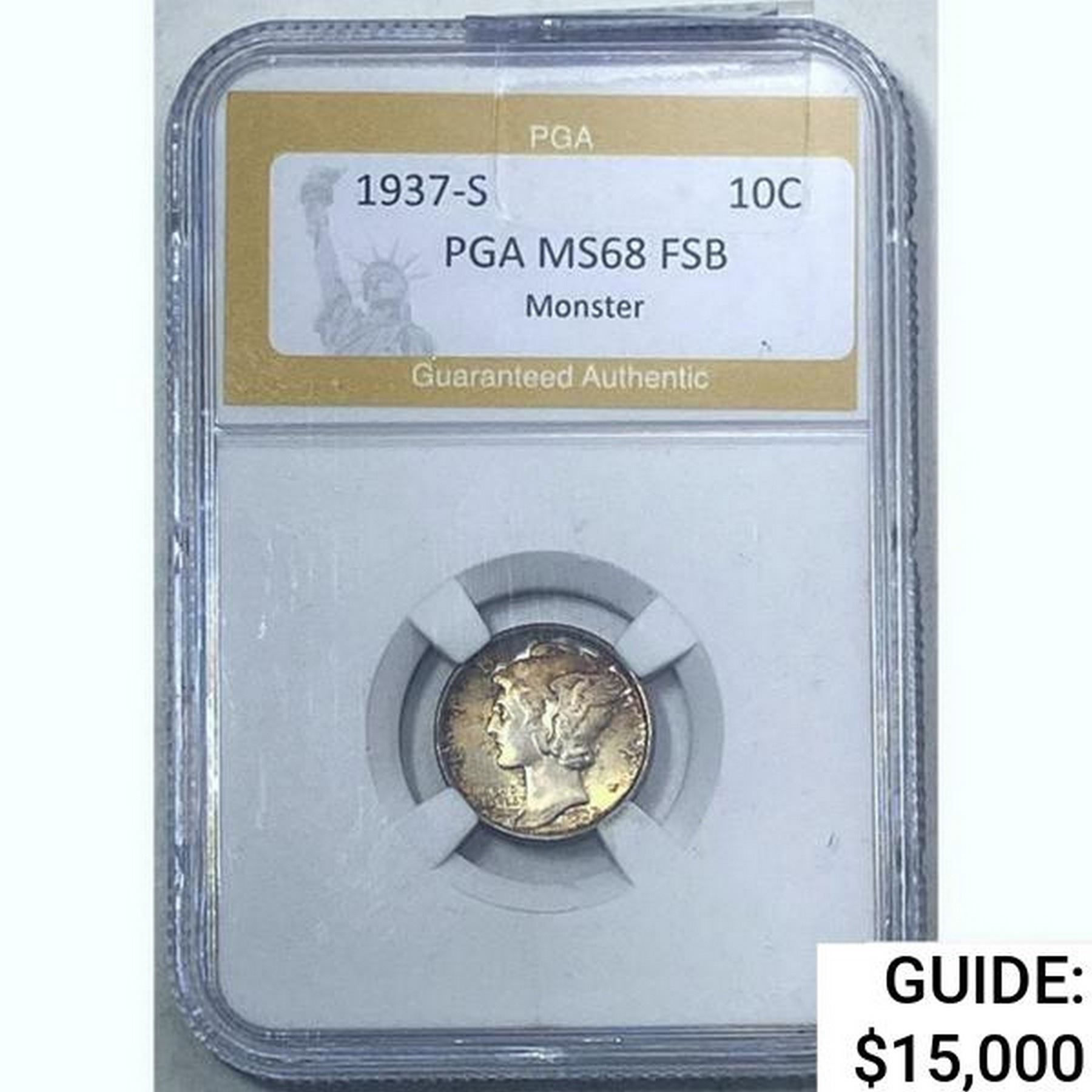1937-S Mercury Silver Dime PGA MS68 FSB Monster