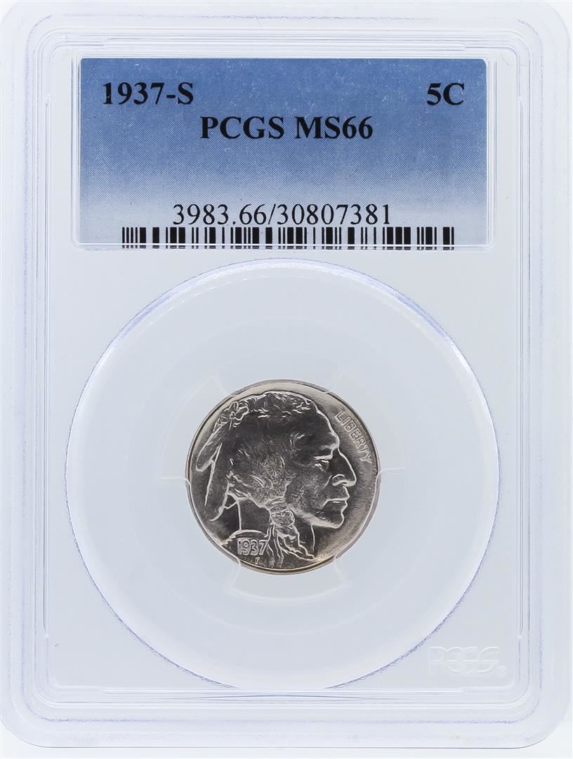 One 1937-S PCGS MS66 Buffalo Nickel. PCGS Certified.