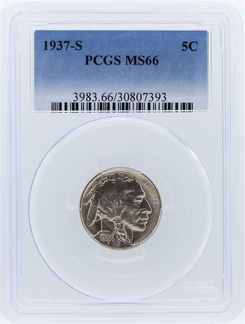 One 1937-S PCGS MS66 Buffalo Nickel. PCGS Certified.