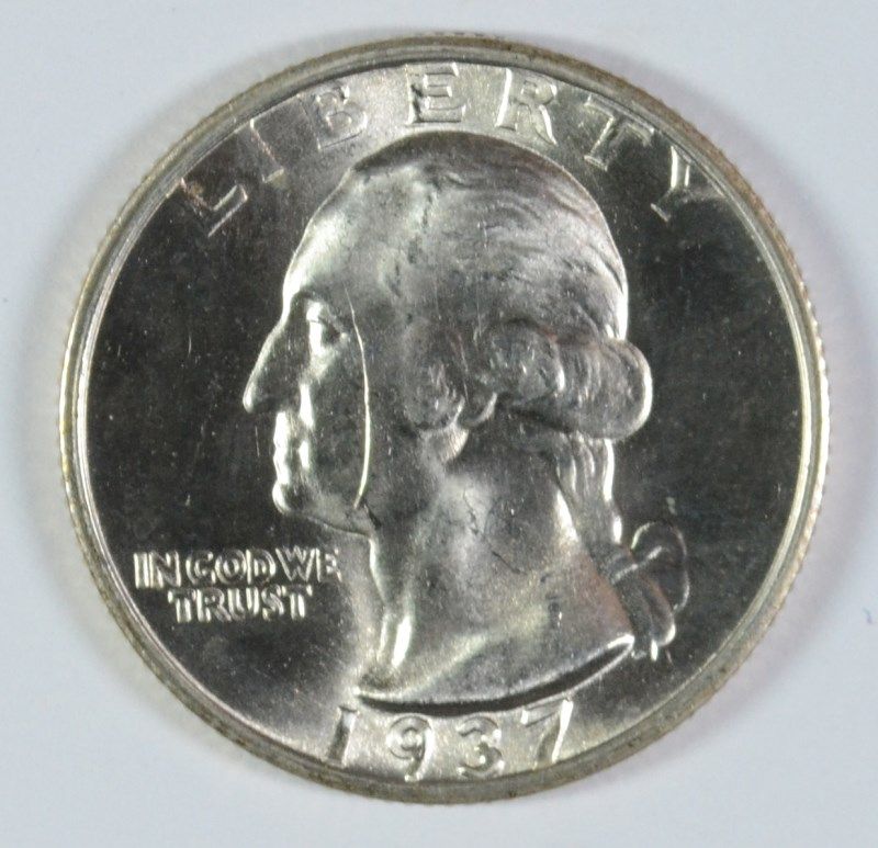 1937-S WASHINGTON QUARTER, MS-64 BLAST WHITE! NICE!