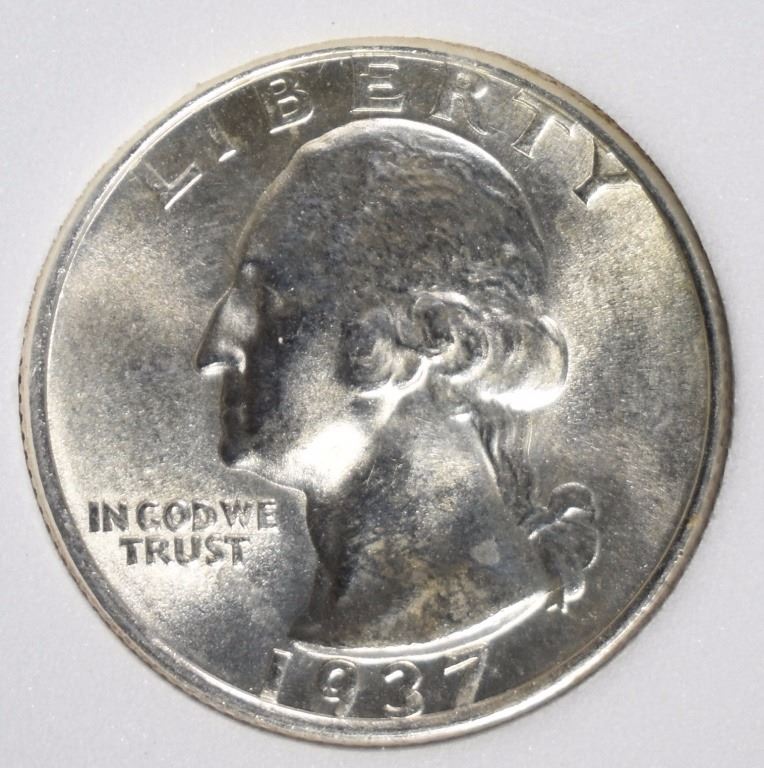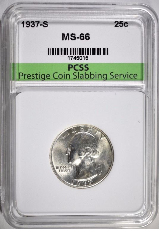 1937-S WASHINGTON QUARTER, PCSS SUPERB GEM BU ESTIMATE $575 - $750.