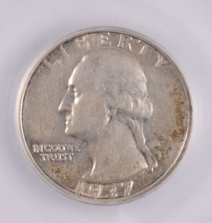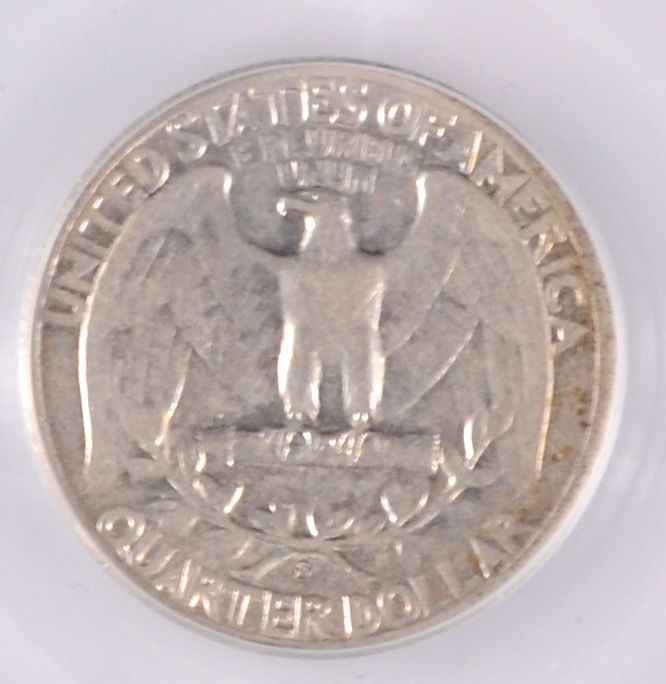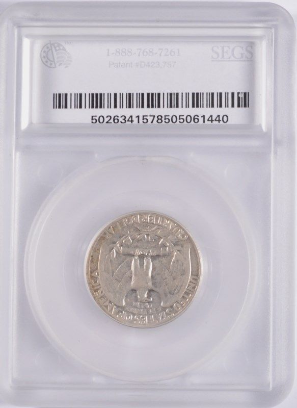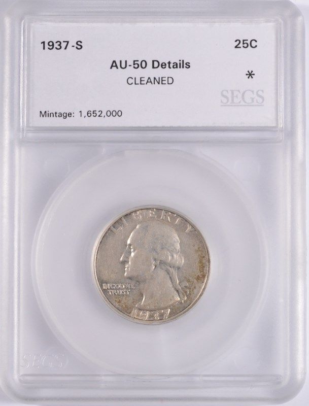 1937-S WASHINGTON QUARTER, SEGS AU-50 CLEANED