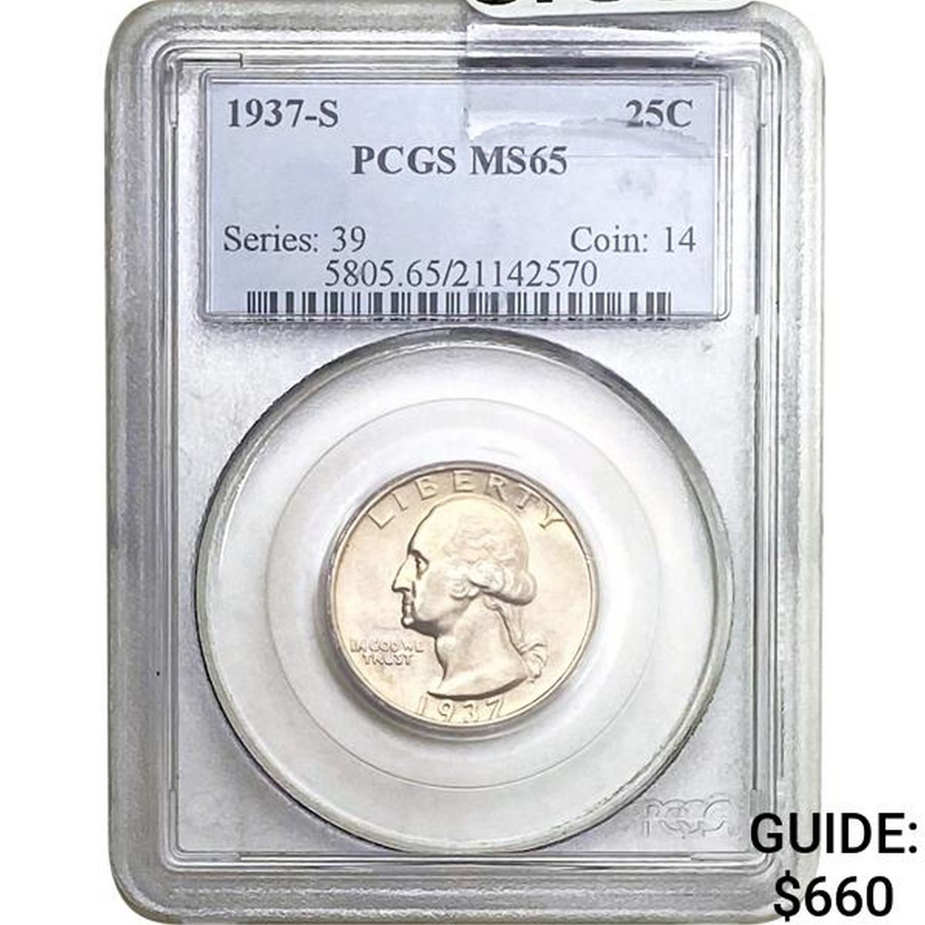 1937-S Washington Quarter PCGS MS65