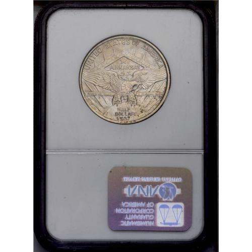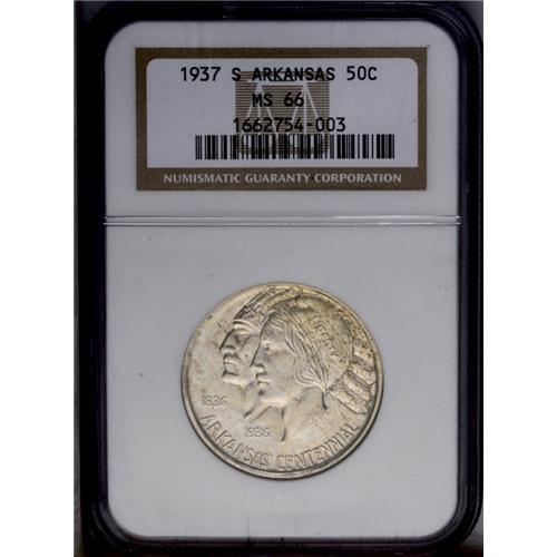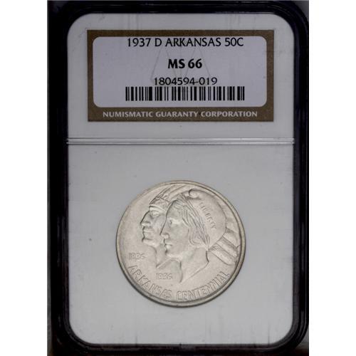 <B>1937<img border='0' src='http://www.heritagecoins.com/images/star.gif' width=10 height=10>ET> Arkansas PDS Set MS66 NGC.</B></I> The set includes: <B>1937,</B></I> lilac-red, aqua-green, and ice-blue toning dominates the obverse; <B>1937-D,</B></I> a satiny and nicely struck pearl-gray Premium Gem; and a <B>1937-S,</B></I> this intricately struck piece features luminous peach and gunmetal-blue patination. <BR><BR><B>Important notice:</B> Heritage usually auctions material at the rate of 200-250 lots per hour. On some occasions eBay Live bid software or the Internet may not be able to keep up with the pace of the auction. We recommend placing a realistic absentee bid now as insurance to avoid disappointment. Occasionally the auctioneer may eliminate or reject an eBay Live bid, and the auctioneer may also reopen a lot after the close of the eBay live bidding (usually because we missed an audience bid), and may reject your bid even if it shows you as the winning bidder. By bidding via eBay Live, you agree that Heritage may award the lot to another bidder at its sole discretion under the circumstances described above or any other reasonable circumstances. Since eBay bids are not shown to us until we open the lot on the floor, we treat those bids just like floor bids. In most cases the floor responds before the eBay bid is presented to us, due to Internet lag time, so for consistency we have made it a policy that floor bids are always considered first over tie eBay live bids. Also please note that all Heritage lots purchased through eBay Live carry a 20% Buyer's Premium. Please make sure you read the Terms and Conditions before you bid. This lot is being auctioned in conjunction with a live floor auction by Heritage Galleries & Auctioneers. All final auction and invoice information will be supplied by Heritage Galleries & Auctioneers, and all other information should be considered preliminary. Lot:4865 <BR><BR><B>Winning Notification and Billing:</B> After the FINAL session in this auction is complete, Heritage will send e-mail and snail mail invoices. This process normally takes several days. All final auction and invoice information will be supplied by Heritage Galleries & Auctioneers, and all other information should be considered preliminary. <BR><BR>This auction will be conducted on a live auction floor and over the Internet through eBay Live. If you choose to place an absentee bid, please take a moment to <font color='#0000ff'><u><a href='http://pages.ebay.com/liveauctions/help/before/laabsentee.html'>learn how eBay Live absentee bidding works</a></u></font><font color='#000000'>