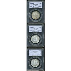 <B>1937<SET> Arkansas PDS Set MS66 PCGS.</B></I> All examples are well matched with satin-to-softly frosted luster and no distracting abrasions. The P and S-mint coins reveal some mottled toning around the peripheries. Housed in consecutively numbered PCGS slabs: 2700233, 2700234, and 2700235. 3 coins <BR><BR><B>Important notice:</B> Heritage usually auctions material at the rate of 200-250 lots per hour. On some occasions eBay Live bid software or the Internet may not be able to keep up with the pace of the auction. We recommend placing a realistic absentee bid now as insurance to avoid disappointment. Occasionally the auctioneer may eliminate or reject an eBay Live bid, and the auctioneer may also reopen a lot after the close of the eBay live bidding (usually because we missed an audience bid), and may reject your bid even if it shows you as the winning bidder. By bidding via eBay Live, you agree that Heritage may award the lot to another bidder at its sole discretion under the circumstances described above or any other reasonable circumstances. Since eBay bids are not shown to us until we open the lot on the floor, we treat those bids just like floor bids. In most cases the floor responds before the eBay bid is presented to us, due to Internet lag time, so for consistency we have made it a policy that floor bids are always considered first over tie eBay live bids. Also please note that all Heritage lots purchased through eBay Live carry a 20% Buyer's Premium. Please make sure you read the Terms and Conditions before you bid.