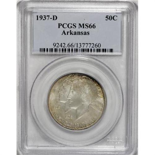 <B>1937 SET Arkansas PDS Set MS66 PCGS.</B></I> The set includes: <B>1937</B></I>, a satiny silver-gray piece with hints of olive and cobalt-blue at the rims; <B>1937-D</B></I>, lilac-inflected, softly lustrous surfaces that exhibit deep dots of violet at the margins; and a <B>1937-S</B></I>, delicate gold-gray tints overall with zones of seal-gray and charcoal, primarily at the peripheries.<BR><BR><b>Shipping:</b> Coins & Currency (<a target="_blank" href="http://www.heritageauctions.com/common/shipping.php">view shipping information</a>)