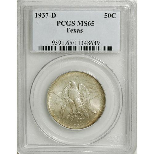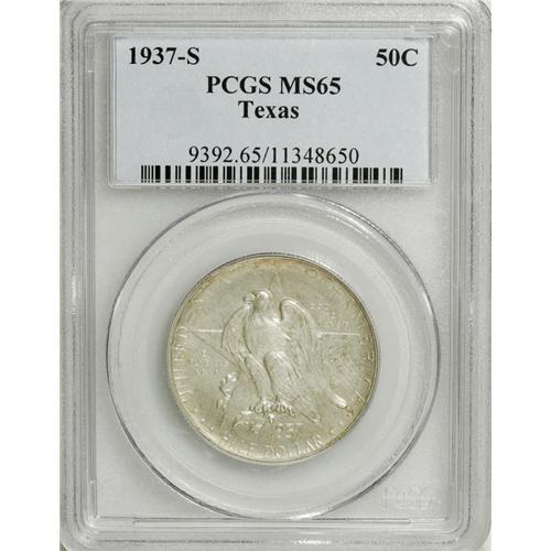 <B>1937 SET Texas PDS Set MS65 PCGS.</B></I> The set includes: <B>1937,</B></I> dappled honey, rose, and sky-blue surfaces, lustrous and boldly struck; <B>1937-D,</B></I> satiny and smooth with a good strike and pearl-gray shadings; and a <B>1937-S,</B></I> well struck and unabraded, a small reverse planchet flaw at 9 o'clock. All three pieces have consecutive PCGS serial numbers.<BR><BR><b>Shipping:</b> Coins & Currency (<a target="_blank" href="http://www.heritageauctions.com/common/shipping.php">view shipping information</a>)