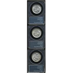 <B>1937<SET> Texas PDS Set MS66 PCGS.</B></I> All three are well preserved with near-brilliant centers and lightly toned margins. A fantastic set for the lover of commemoratives or a Texas aficionado. <BR><BR><B>Important notice:</B> Heritage usually auctions material at the rate of 200-250 lots per hour. On some occasions eBay Live bid software or the Internet may not be able to keep up with the pace of the auction. We recommend placing a realistic absentee bid now as insurance to avoid disappointment. Occasionally the auctioneer may eliminate or reject an eBay Live bid, and the auctioneer may also reopen a lot after the close of the eBay live bidding (usually because we missed an audience bid), and may reject your bid even if it shows you as the winning bidder. By bidding via eBay Live, you agree that Heritage may award the lot to another bidder at its sole discretion under the circumstances described above or any other reasonable circumstances. Since eBay bids are not shown to us until we open the lot on the floor, we treat those bids just like floor bids. In most cases the floor responds before the eBay bid is presented to us, due to Internet lag time, so for consistency we have made it a policy that floor bids are always considered first over tie eBay live bids. Also please note that all Heritage lots purchased through eBay Live carry a 20% Buyer's Premium. Please make sure you read the Terms and Conditions before you bid. </span></font></tr></table></td></tr></table>